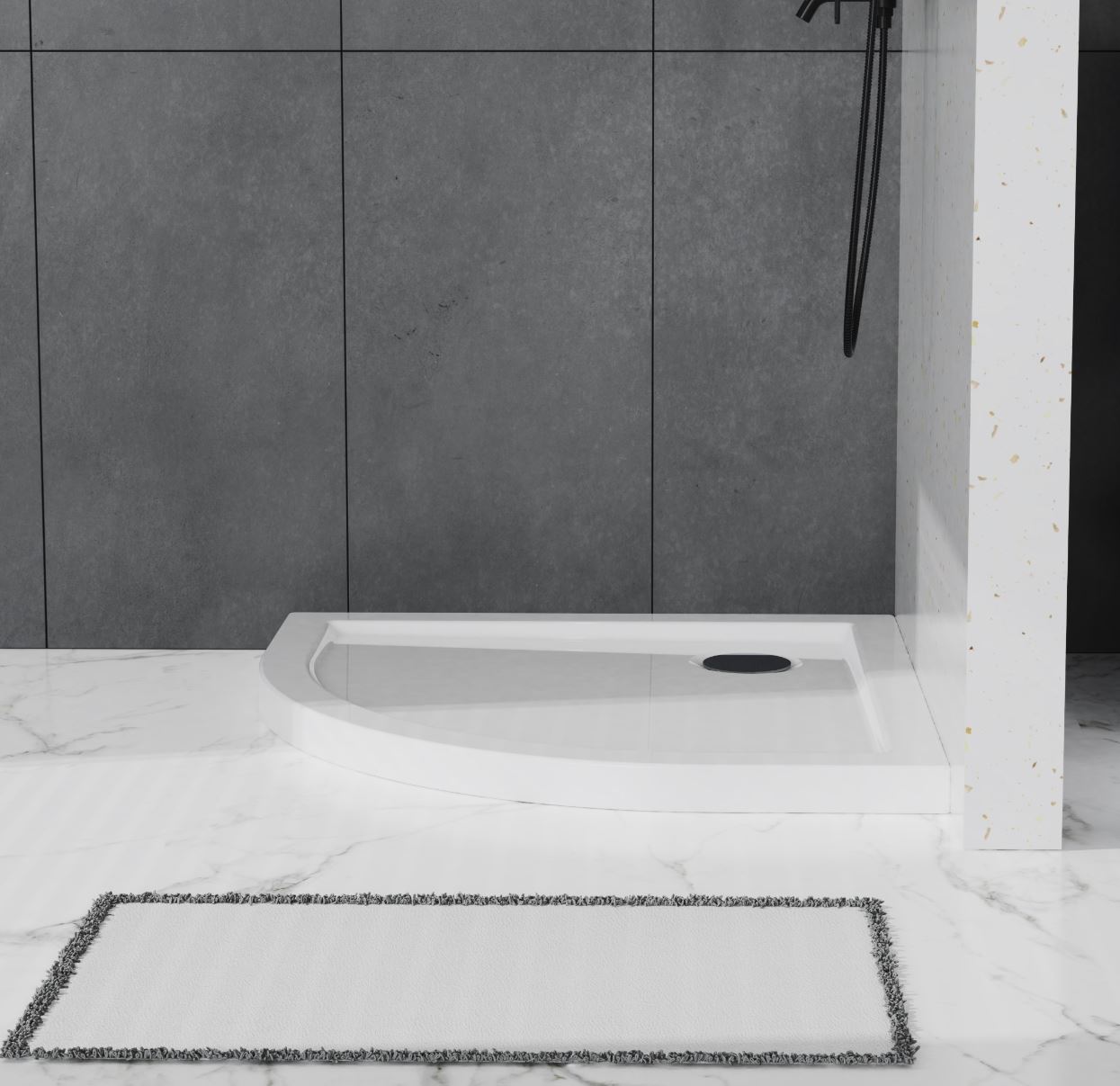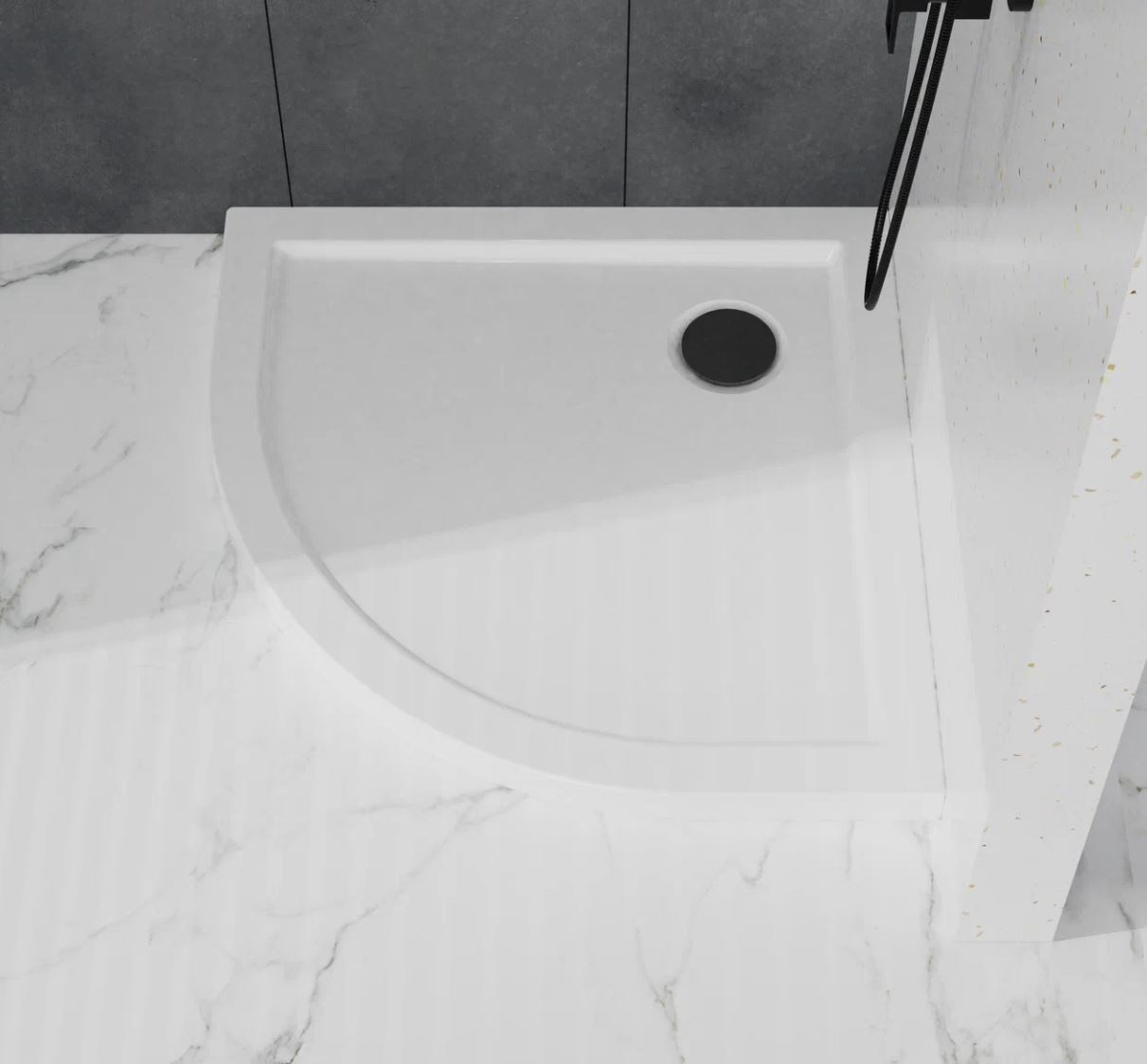 Душевой поддон изготовлен из высококачественного акрила, усиленного фиберглассом.