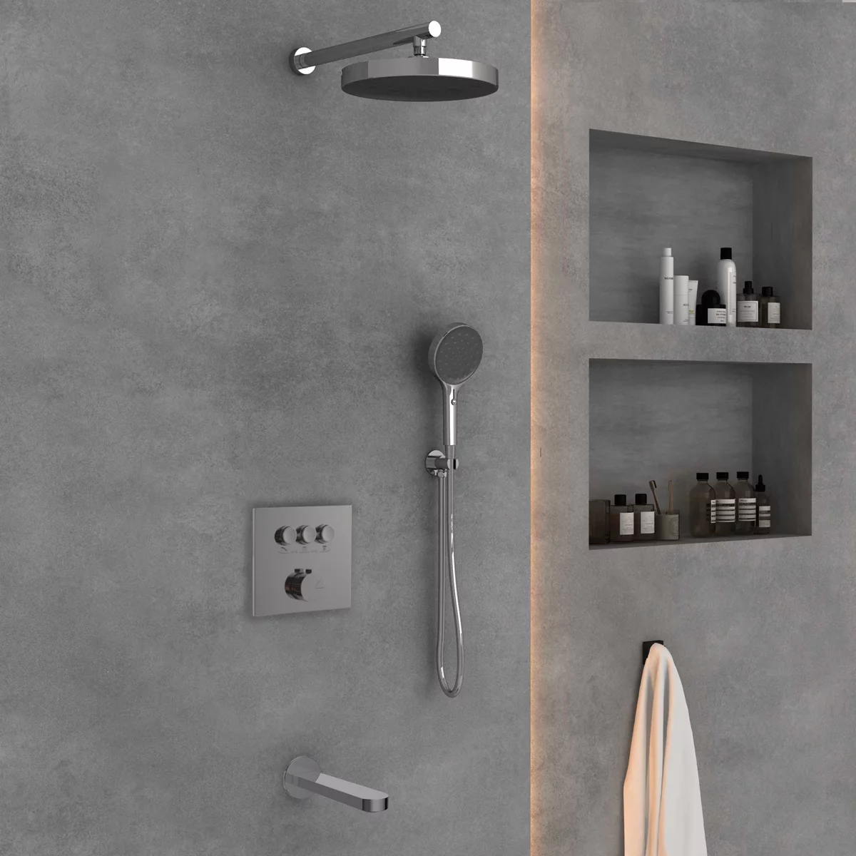 скрытая часть, ручной душ, шланг , держатель для лейки |