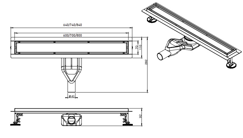 сифон из АБС-пластика , опоры регулируемые, гидроизолирующая прокладка