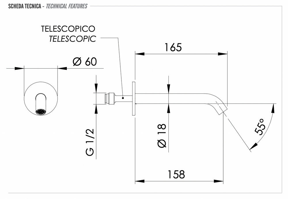 Излив настенный 16 см Remer X Style INOX SS91X, нержавеющая сталь