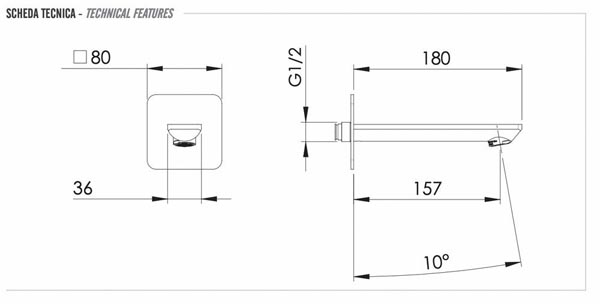 Излив настенный 18 см Remer Energy 91EYXV, сталь