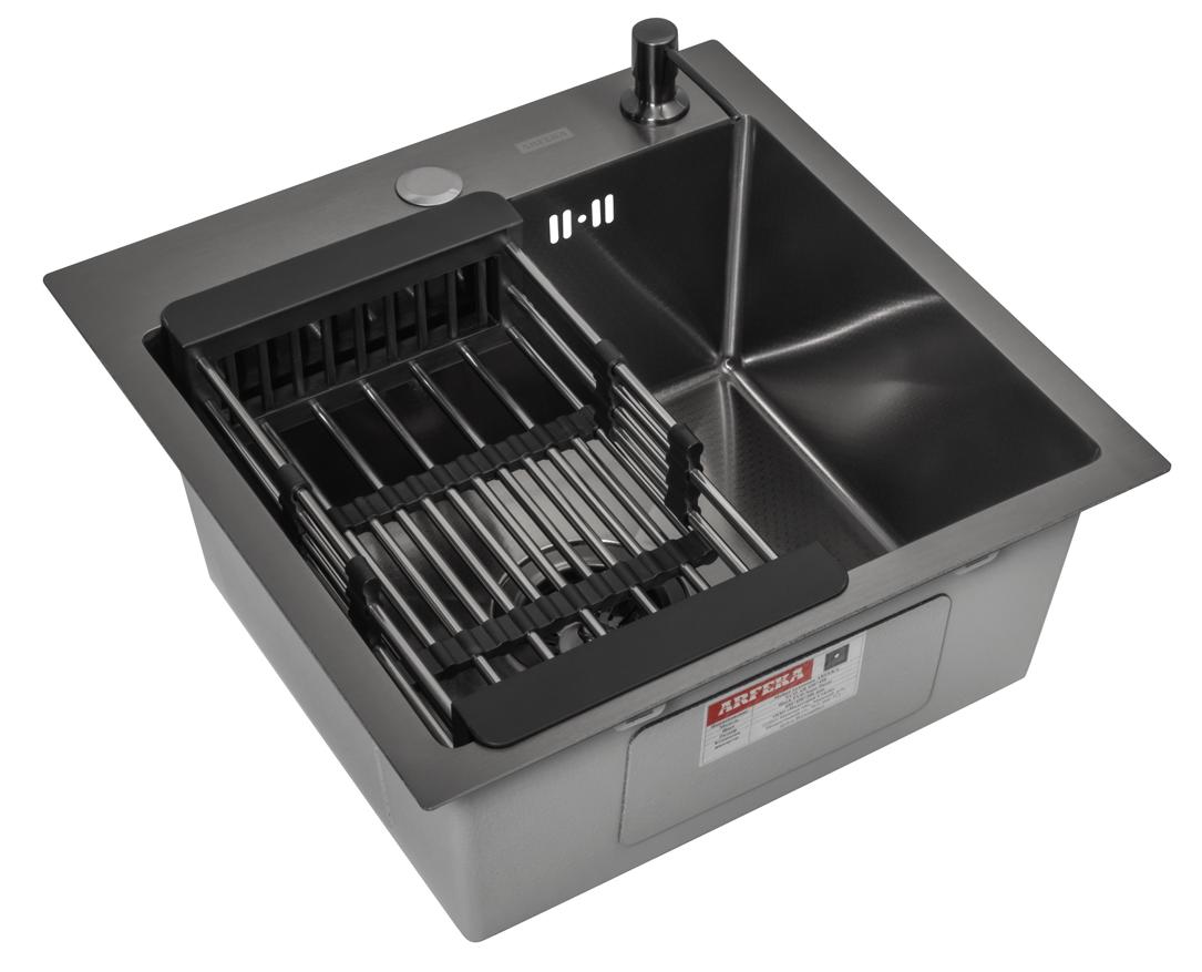 Комплект Arfeka Eco AR мойка 450*450 (настольная), коландер, дозатор black decor
