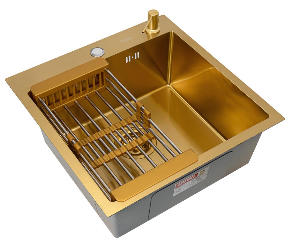 Комплект Arfeka Eco AR мойка 500*500, коландер, дозатор gold
