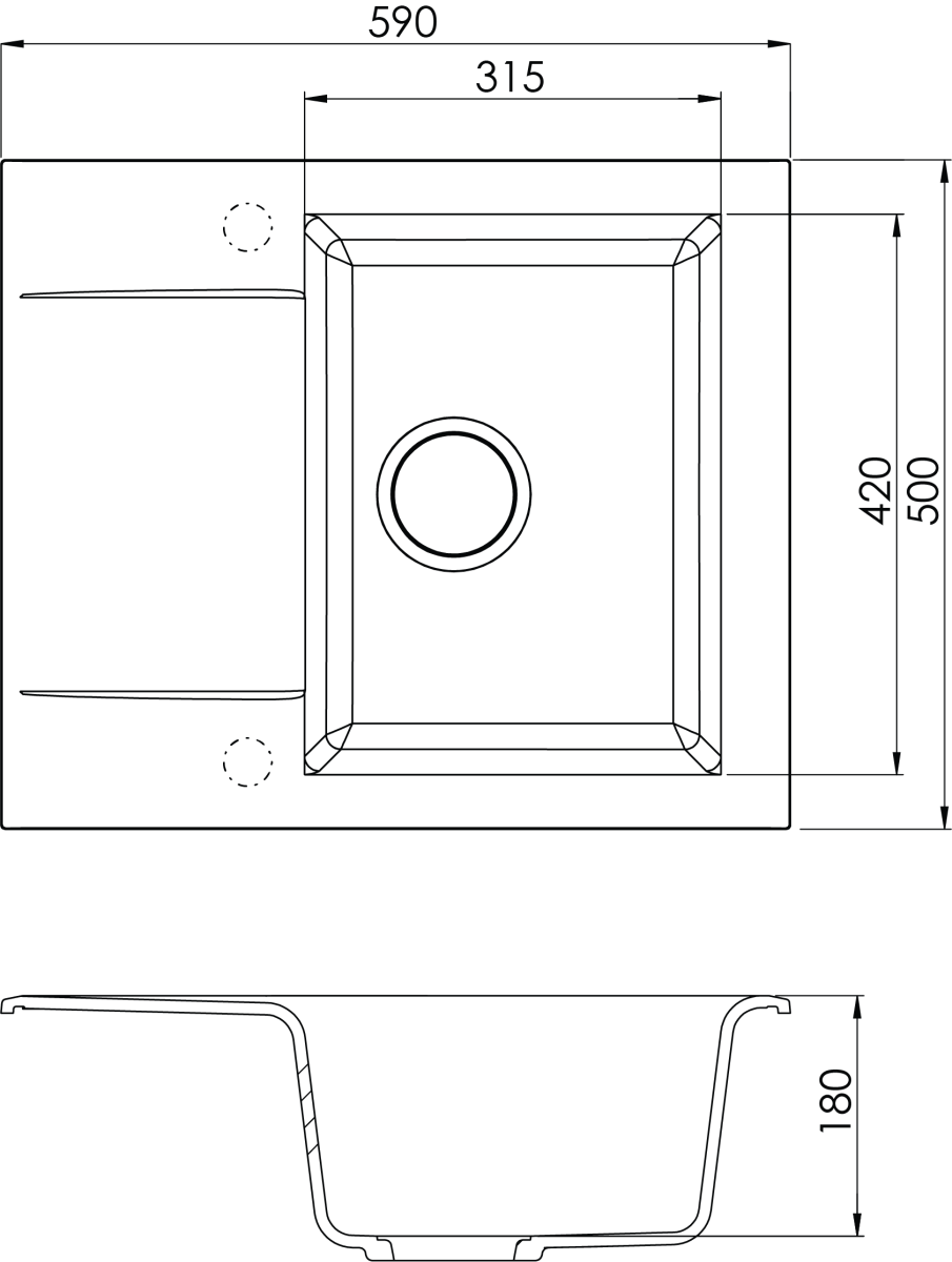 Мойка с площадкой под смеситель, облегчает установку смесителя на кухню, дает дополнительную гарантию герметичности смесителю.