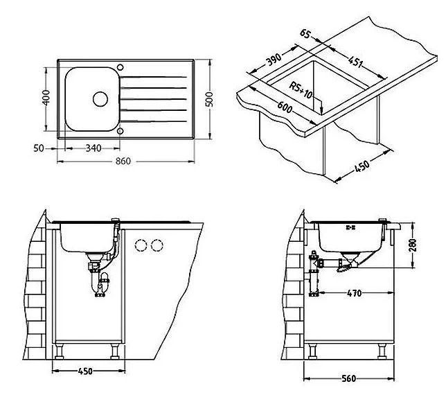 Классические врезные мойки устанавливаются в кухонную столешницу и являются частью ее рабочей поверхности. В вырез соответствующего размера с верхней стороны столешницы вставляем мойку и прикрепляем ее