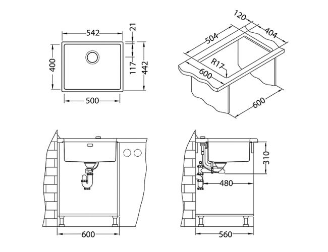 Мойка без крыла - это универсальная мойка, для котрой не нужно много пространства, как на столешнице, так и в кухонном шкафу