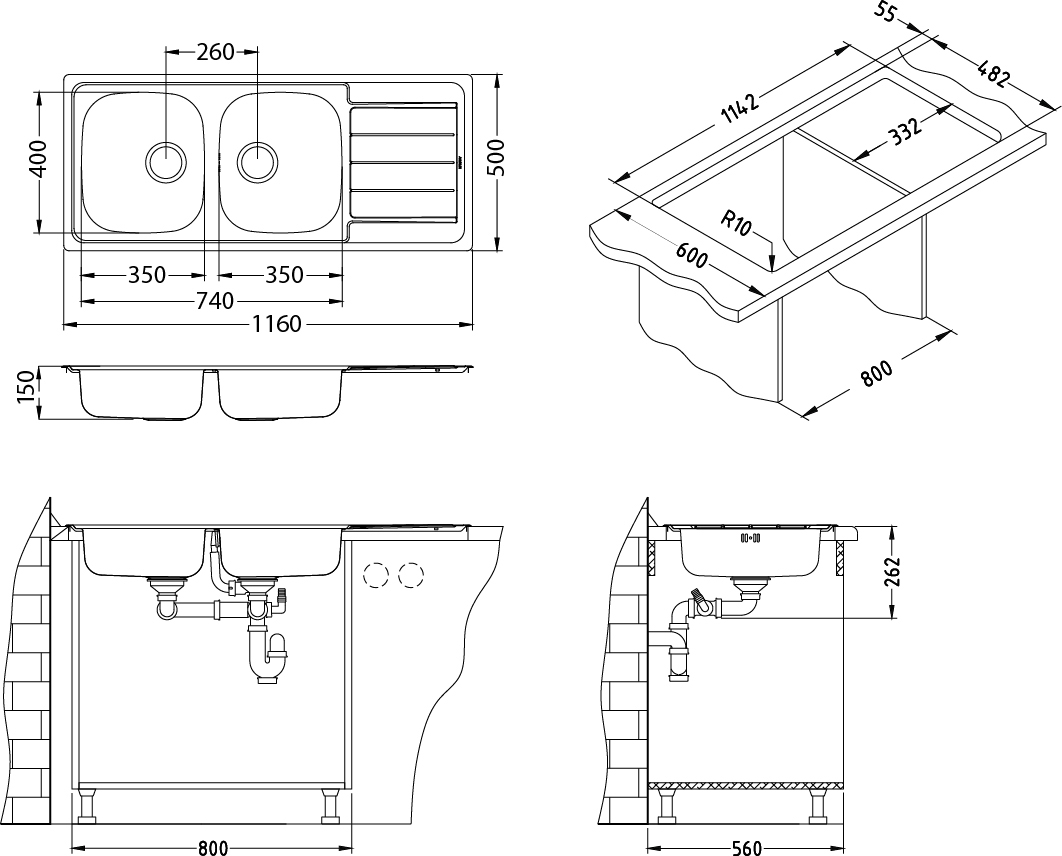 Оборачиваемая мойка - универсальная мойка с крылом, которую в заивисимости от особенностей конкректной кухни можно развернуть в любую сторону, чаша может быть как слева, так и справа