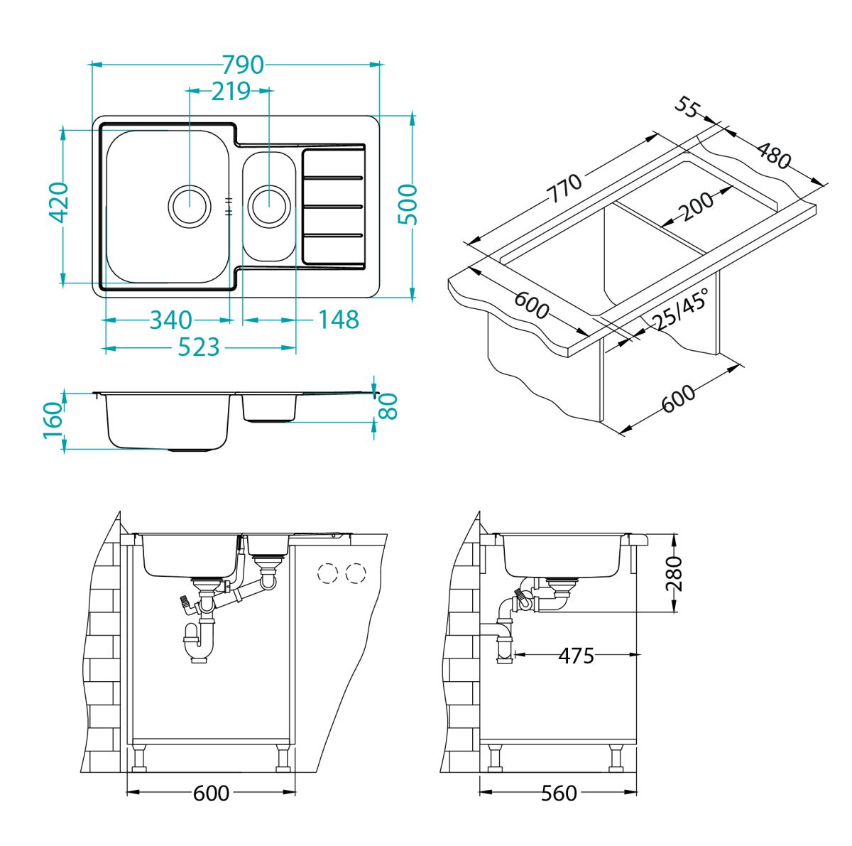 Оборачиваемая мойка - универсальная мойка с крылом, которую в заивисимости от особенностей конкректной кухни можно развернуть в любую сторону, чаша может быть как слева, так и справа