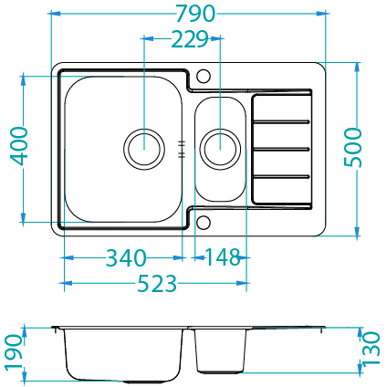 Оборачиваемая мойка - универсальная мойка с крылом, которую в заивисимости от особенностей конкректной кухни можно развернуть в любую сторону, чаша может быть как слева, так и справа