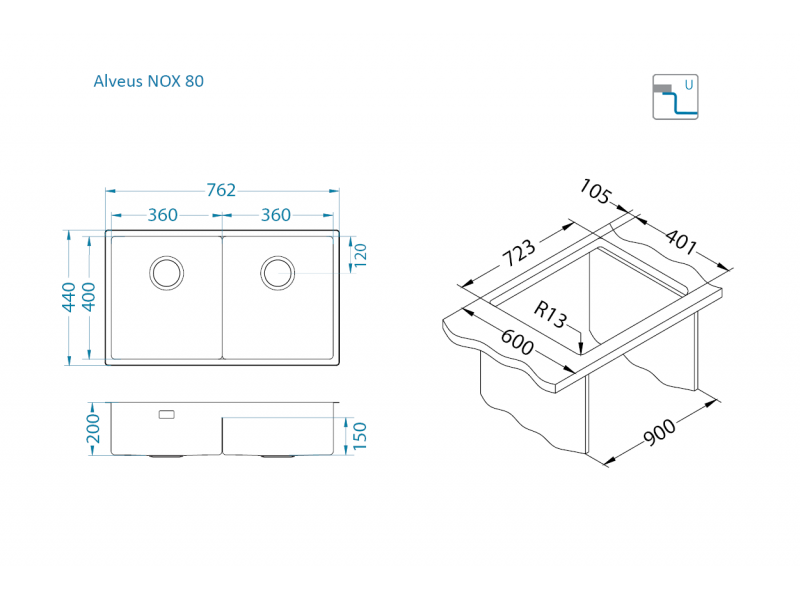 Мойка для кухни Alveus NOX 80 BRS 762x440x200 1149928
