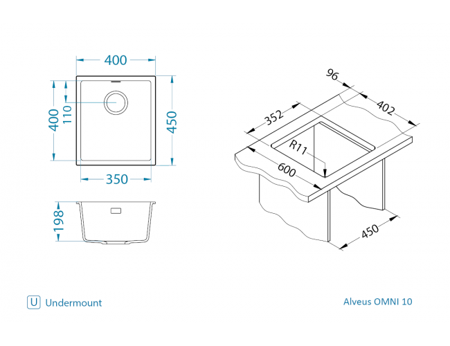 Новая коллекция OMNI от ALVEUS - это универсальное решение для современной кухни. Два варианта монтажа - классический врезной и подстольный. Два крепежа для двух способов крепления в комплекте. Четкие грани, скрытый в чаше перелив. 5 лет заводской гарантии.