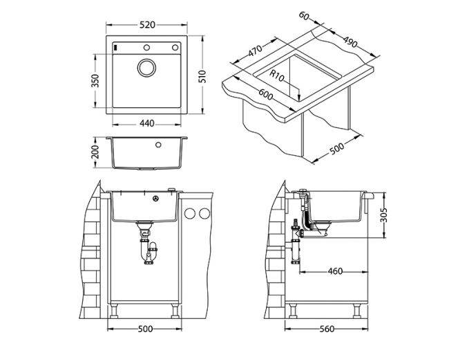 Отсутствие проделанных заранее отверстий в мойке делают ее более универсальной. Вы можете установить смеситель, дозатор, кран ля питьевой воды именно там, где Вам это удобно. Сделать отверстие в мойке можно с помощью обычного домашнего инструмента, и не требует профессиональных навыков.