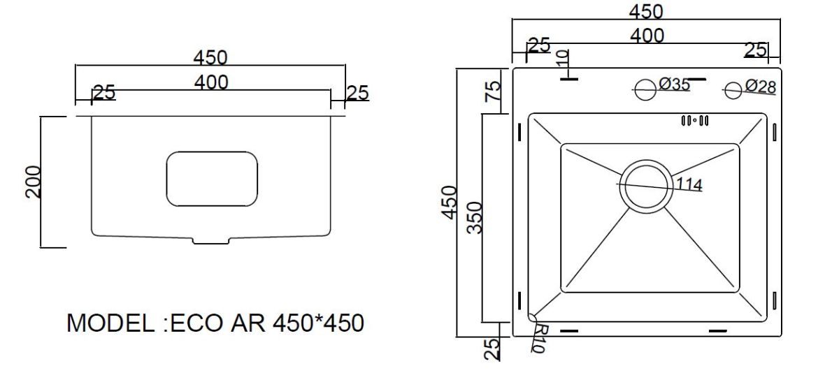Мойка кухонная Arfeka Eco AR 450*450 black PVD NANO decor (настольная)