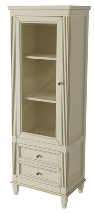 Шкаф-пенал с 2 ящиками и дверью (левое открывание), Верхний фасад со стеклом, выпускается в отделках из Реестра отделок мебели CLASSIC, внутри 2 полки