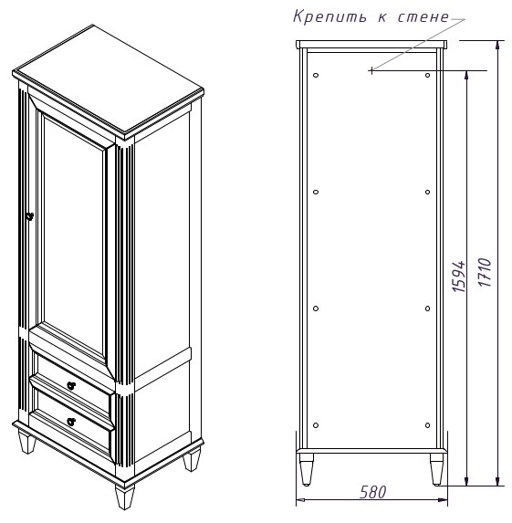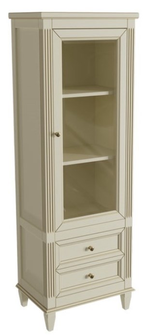 Шкаф-пенал с 2ящиками и дверью (правое открывание), Верхний фасад со стеклом, выпускается в отделках из Реестра отделок мебели CLASSIC, внутри 2 полки