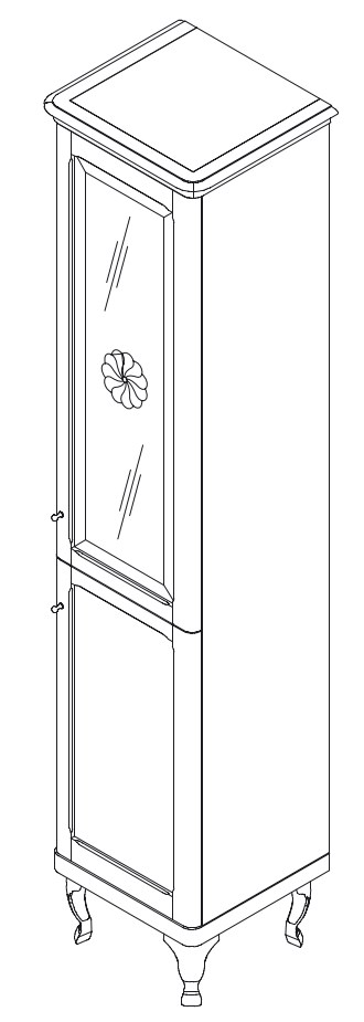Шкаф-пенал с 2 дверьми глубокий (370мм), правое открывание. Верхн.фасад стекло. Выпуск в отделках из реестра CLASSIC, внутри 3 стеклянные полки.