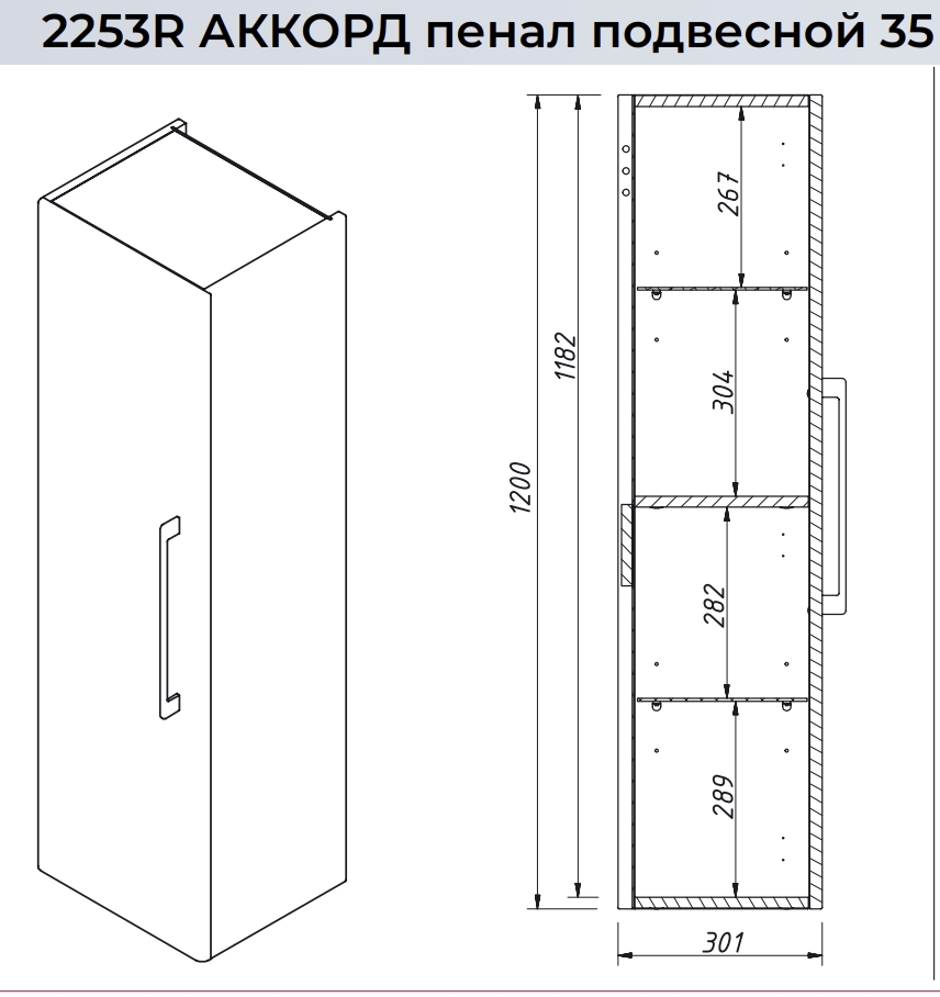 Пенал подвесной Caprigo Accord 35 R 2253R-SF019