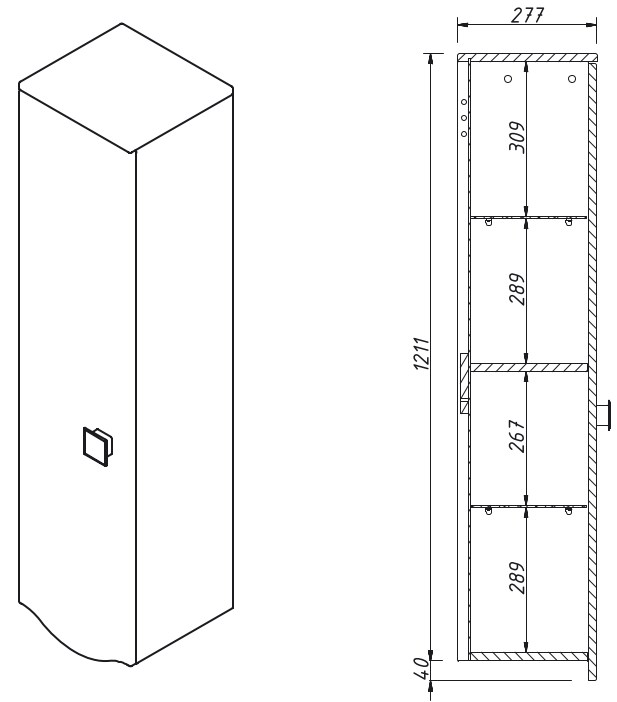 Шкаф-пенал подвесной 30 см, 1 дверь левое открывание, производится под заказ в любых отделках из реестра"MODERN"