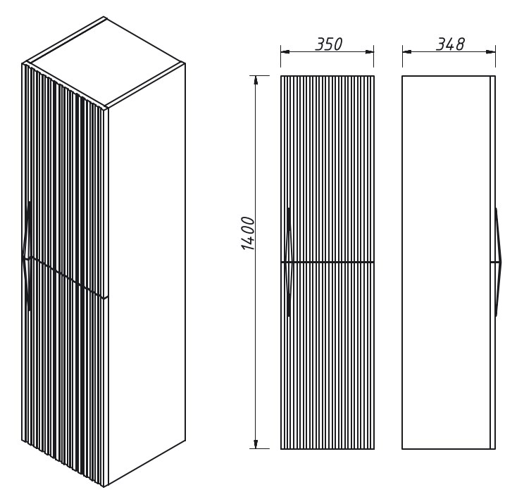 Шкаф-пенал подвесной с 2 дверьми, левое открывание. Выпуск в любых отделках из реестра MODERN. Внутри 3 полки