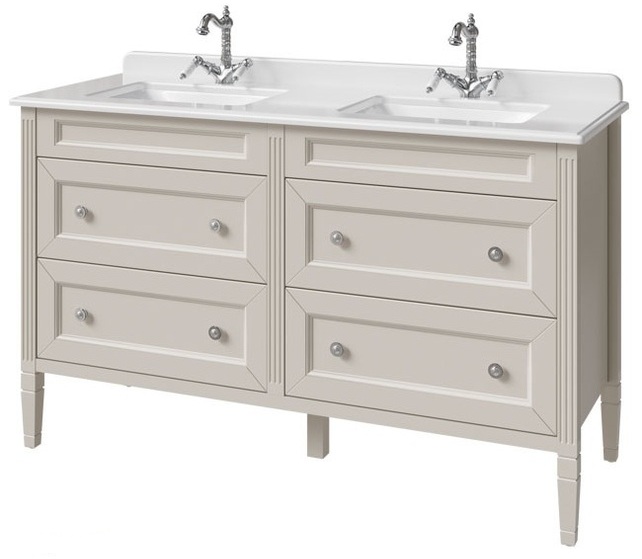 Тумба для столешницы и двух рак.140 см, 4 ящика, выпускается в отделках из реестра CONCEPT, кроме SF027 Бланж. Варианты раковин (фаянс)арт.: 0211; 1427:540N; Сева DUO отдельно заказывается столешница