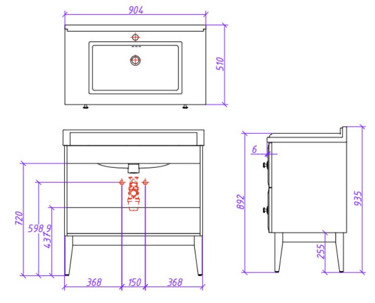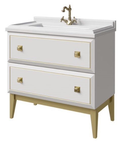 Тумба 90 см для рак.моноблок(ножка 37 см) с 2 ящиками. Выпуск в отделках ЭМАЛЯМИ из реестра CLASSIC. Варианты раковин: UV-90