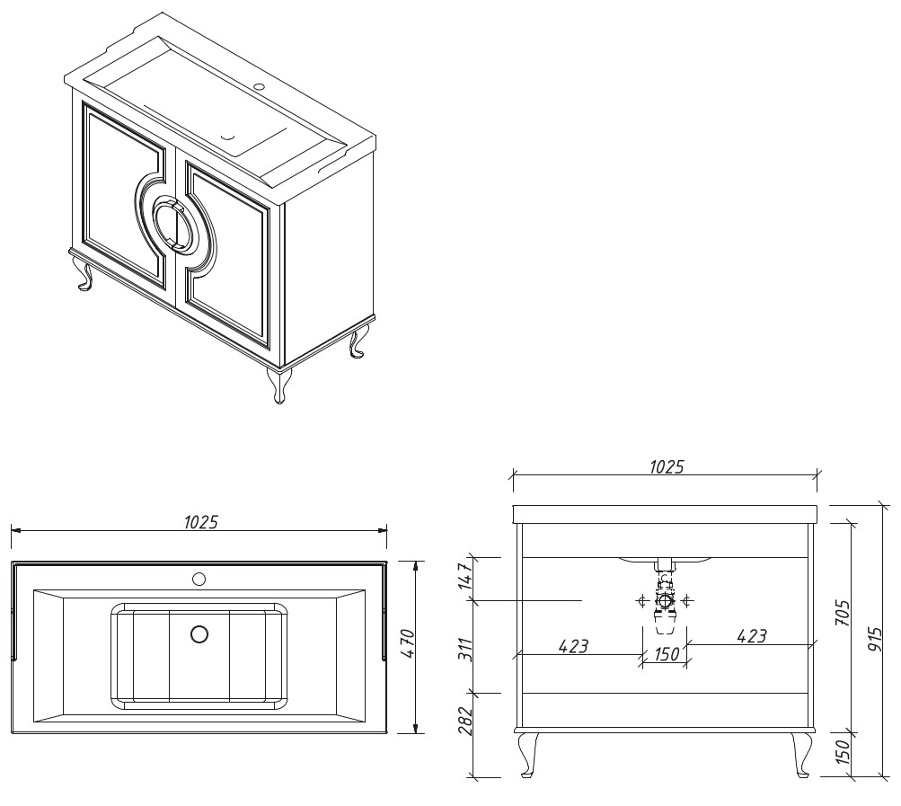Тумба напольная Caprigo Valletta 100 35314-SF027