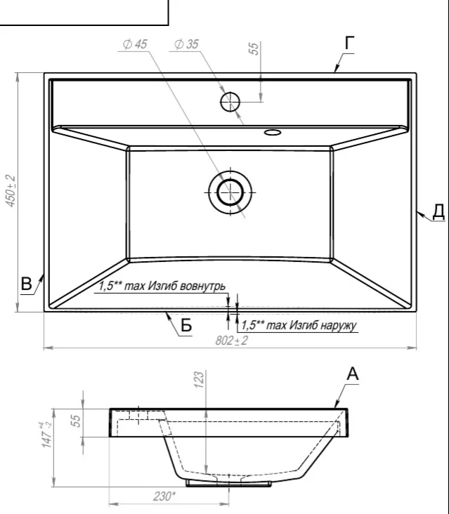 Под умывальник шириной, см