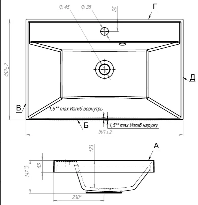 Под умывальник шириной, см