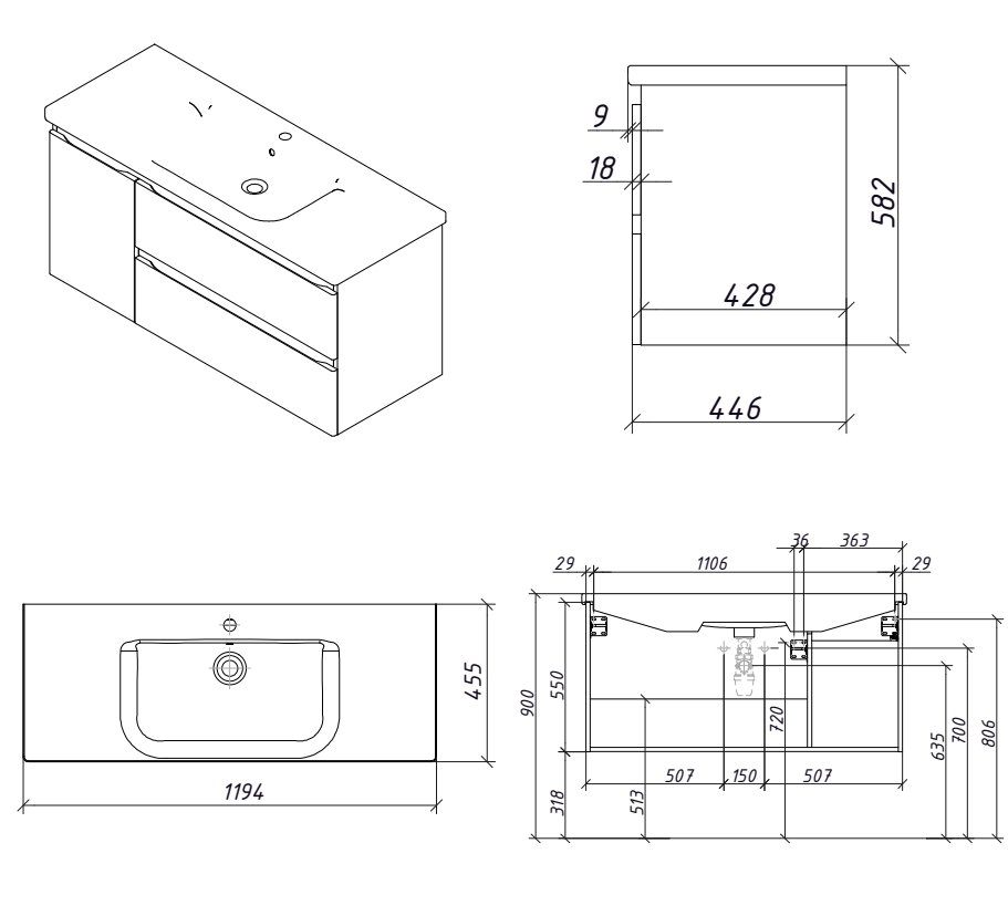 Тумба подвесная Caprigo Forte 100 36117L-SF025 купить в Минске, цена