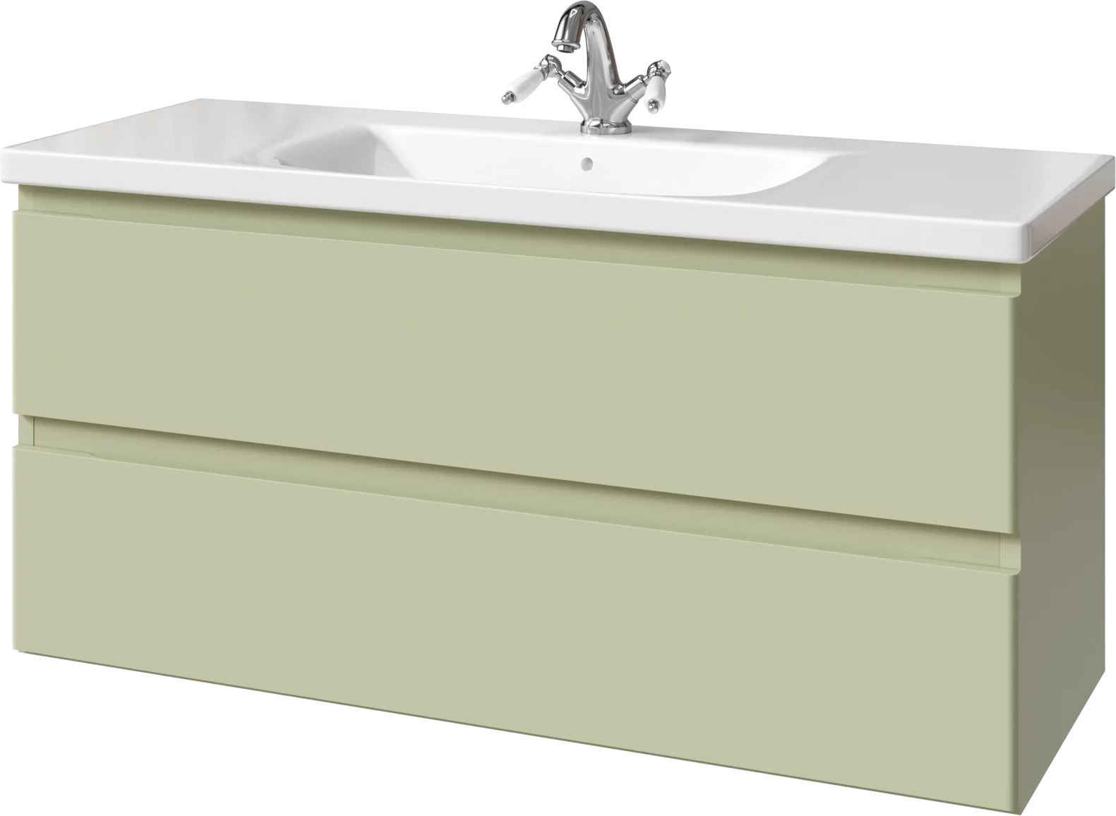 Тумба подвесная для раковины 120 см с 2 ящиками. Ручки интегрированные в фасадах. Выпускается в Матовых и Текстурированных отделках из реестра MODERN (ограничение по глянцевым отделкам).
