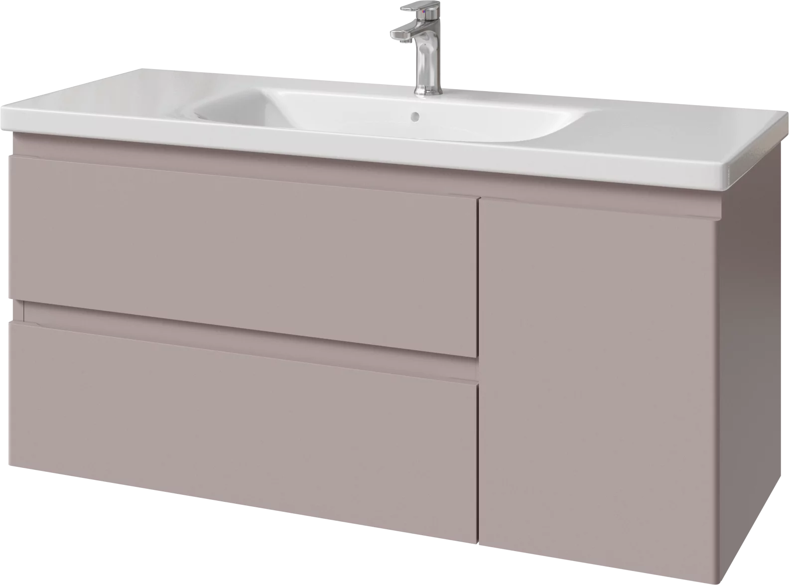 Тумба подвесная для раковины 120 см с 2 ящиками и 1 дверью (справа). Ручки интегрированные в фасадах. Выпускается в Эмалях из реестра CLASSIC.