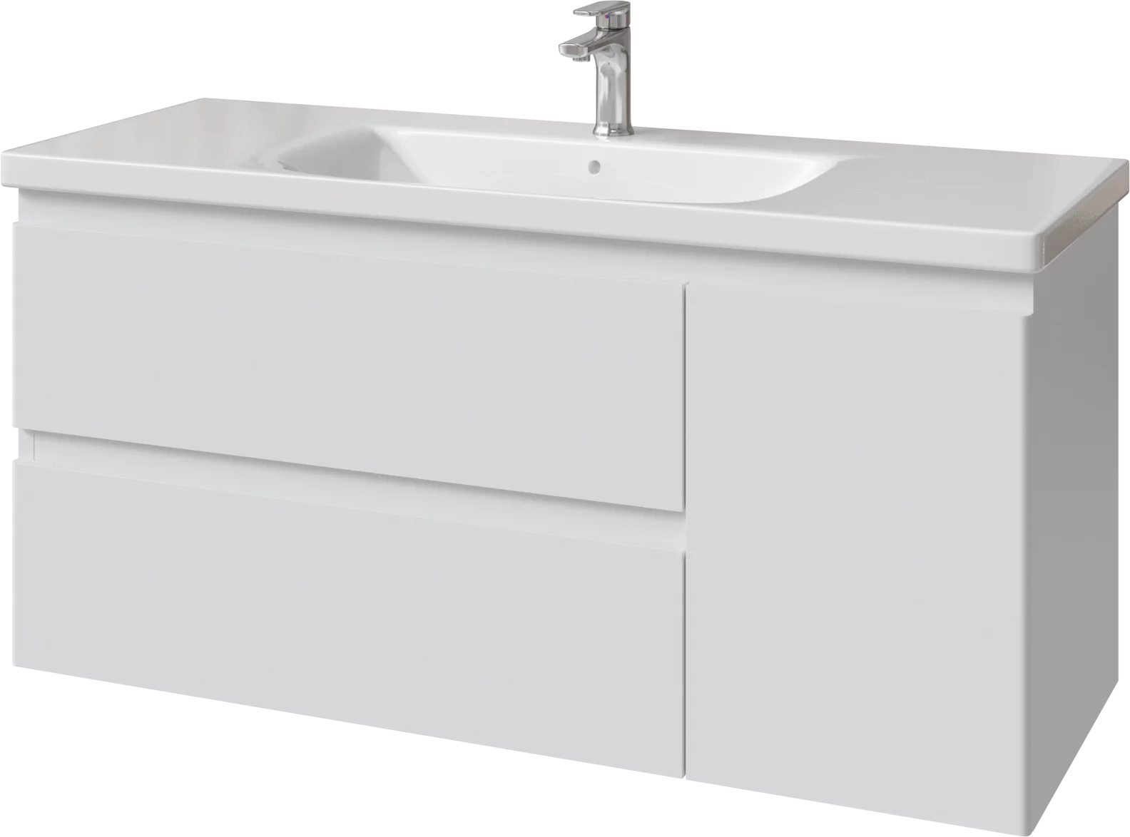 Тумба подвесная для раковины 120 см с 2 ящиками и 1 дверью (справа). Ручки интегрированные в фасадах. Выпускается в Эмалях из реестра CLASSIC.