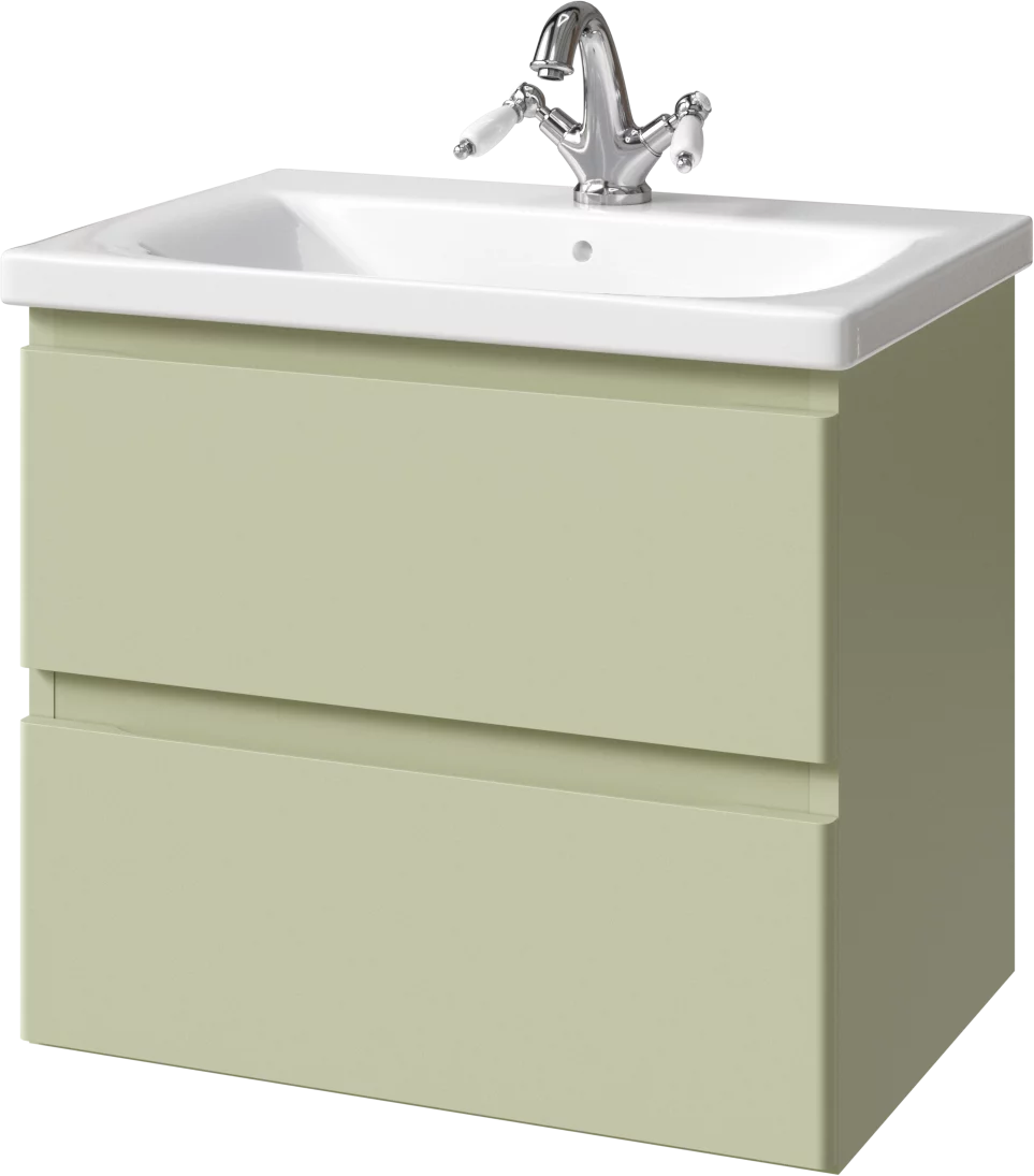 Тумба подвесная для раковины 65 см с 2 ящиками. Ручки интегрированные в фасадах. Выпускается в Матовых и Текстурированных отделках из реестра MODERN (ограничение по глянцевым отделкам).