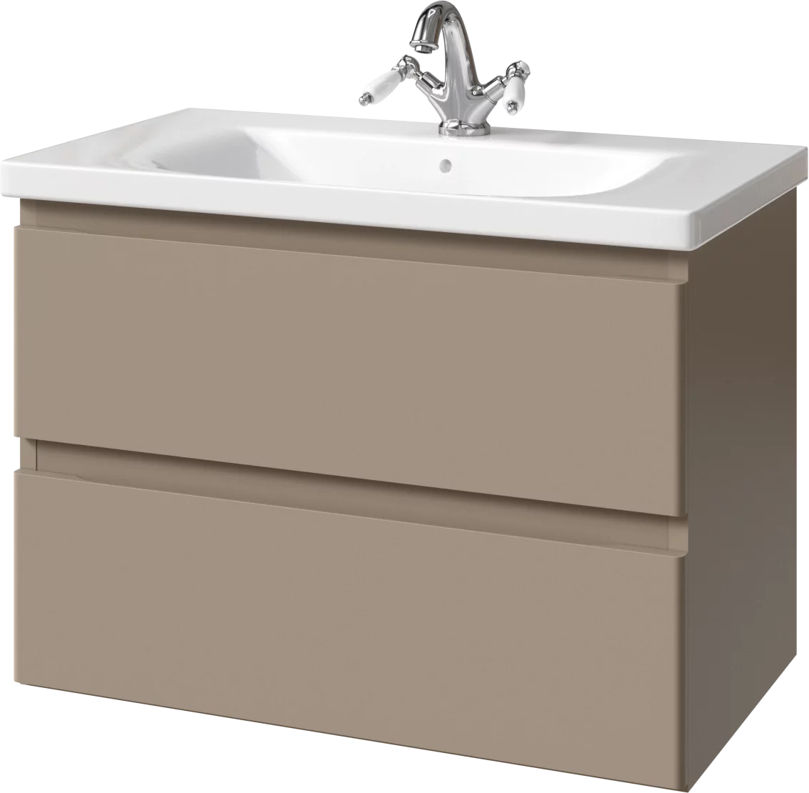 Тумба подвесная для раковины 80 см с 2 ящиками. Ручки интегрированные в фасадах. Выпускается в Матовых и Текстурированных отделках из реестра MODERN (ограничение по глянцевым отделкам).