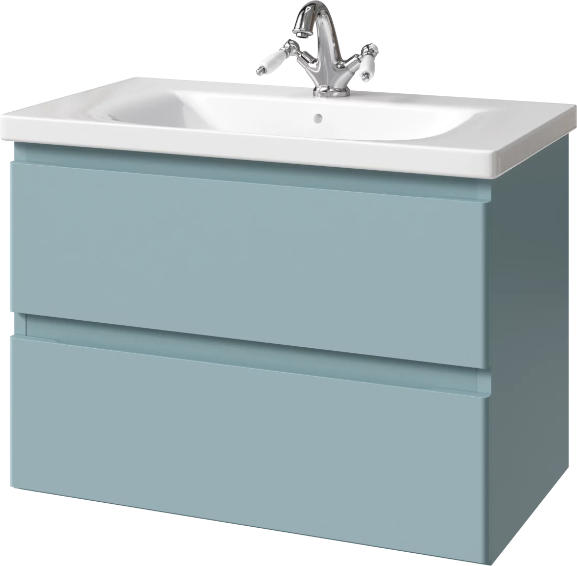 Тумба подвесная для раковины 80 см с 2 ящиками. Ручки интегрированные в фасадах. Выпускается в Матовых и Текстурированных отделках из реестра MODERN (ограничение по глянцевым отделкам).