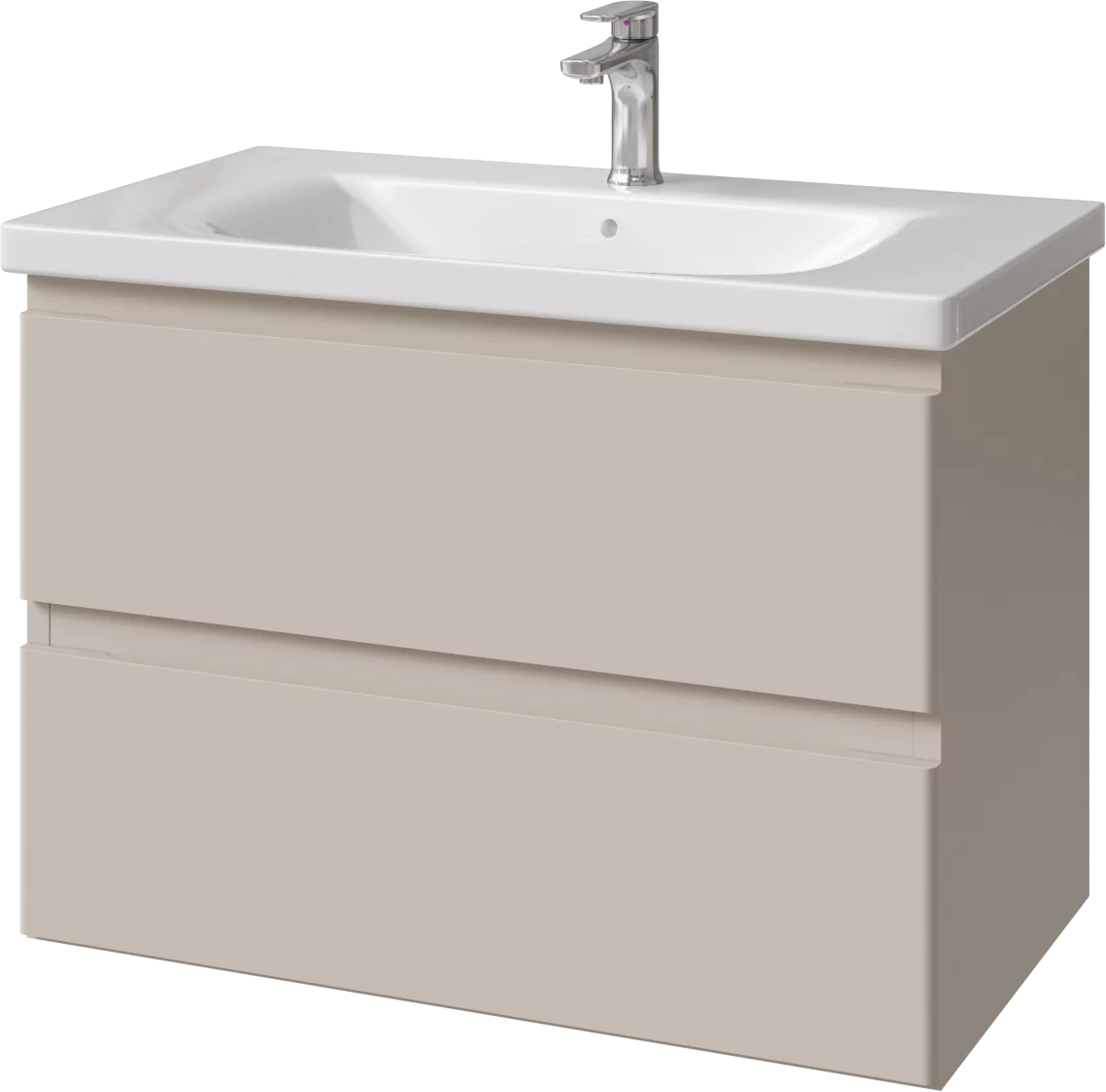 Тумба подвесная для раковины 80 см с 2 ящиками. Ручки интегрированные в фасадах. Выпускается в Эмалях из реестра CLASSIC.