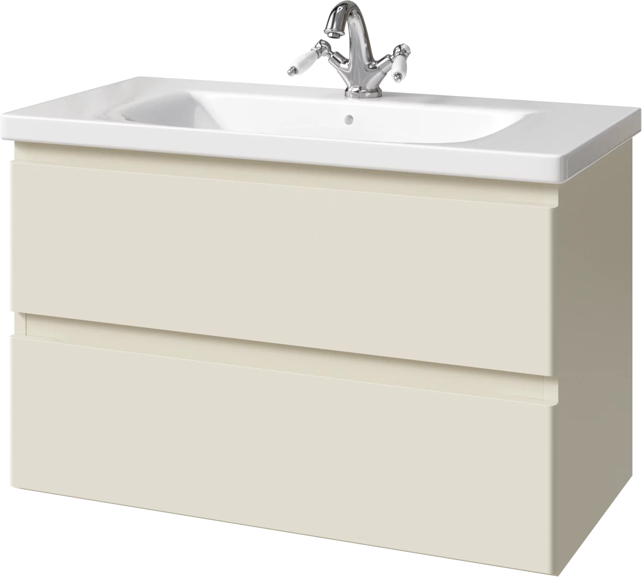 Тумба подвесная для раковины 90 см с 2 ящиками. Ручки интегрированные в фасадах. Выпускается в Матовых и Текстурированных отделках из реестра MODERN (ограничение по глянцевым отделкам).