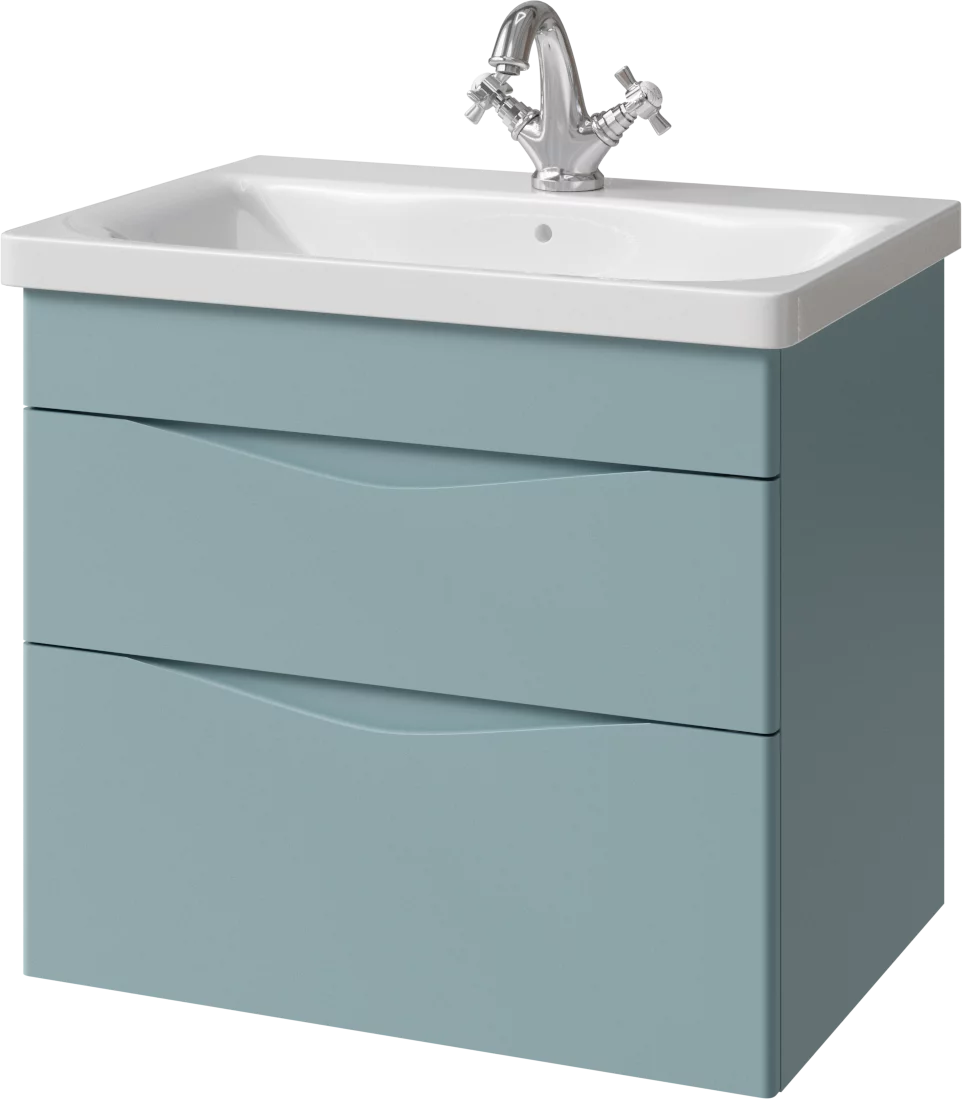 Тумба подвесная для раковины 65 см с 2 ящиками. Ручки интегрированные в фасадах. Выпускается в Матовых и Текстурированных отделках из реестра MODERN (ограничение по глянцевым отделкам).