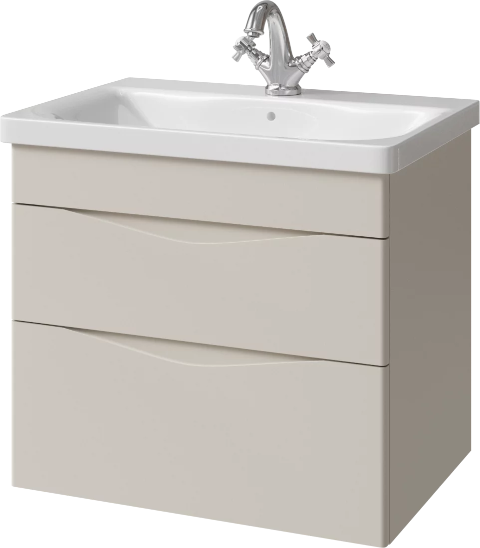 Тумба подвесная для раковины 65 см с 2 ящиками. Ручки интегрированные в фасадах. Выпускается в Матовых и Текстурированных отделках из реестра MODERN (ограничение по глянцевым отделкам).