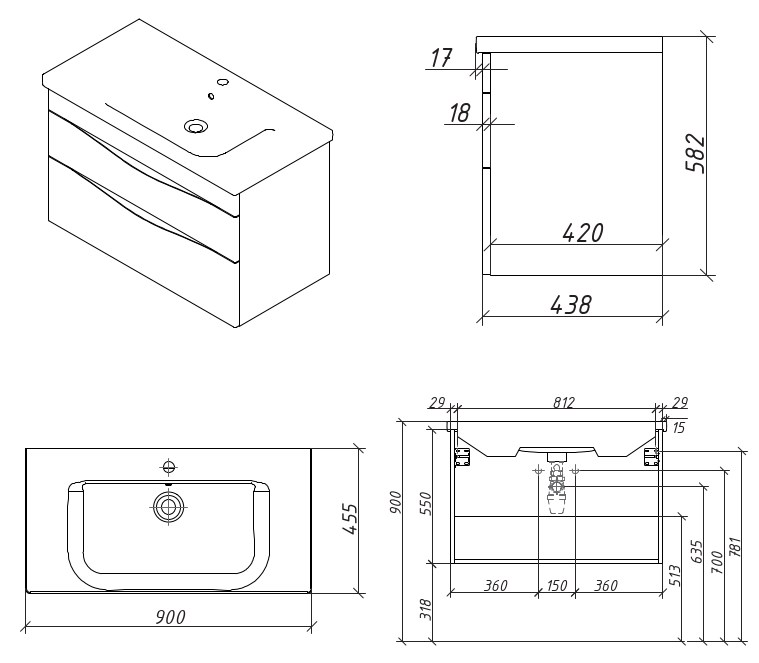 Варианты раковин: SF 90