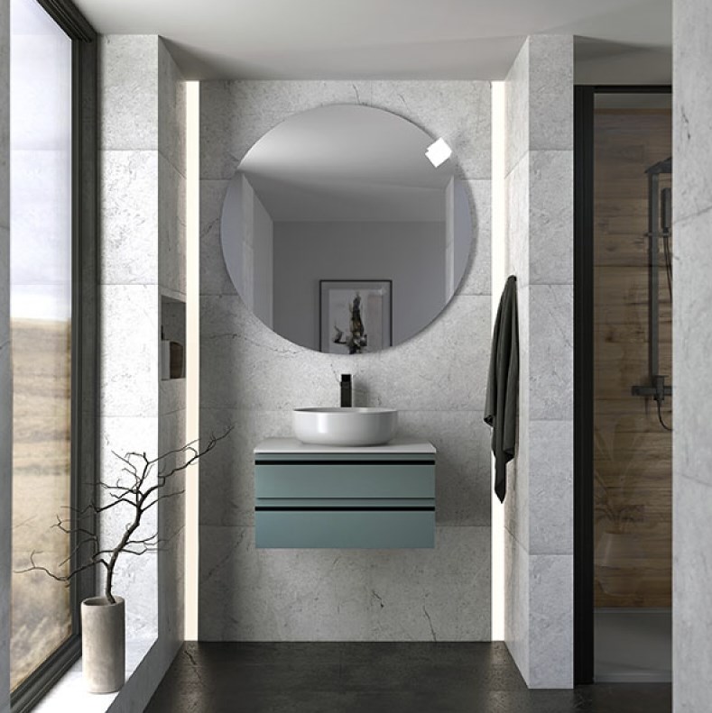 Alexis OA в различных размерах представляет собой подвесную тумбу и столешницу из искусственного камня Керрок.