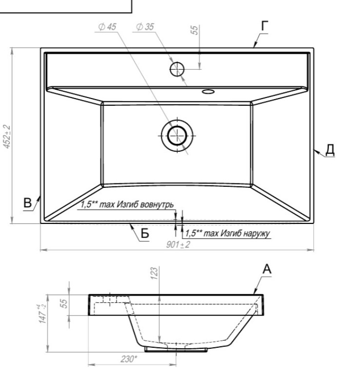 Под умывальник шириной, см