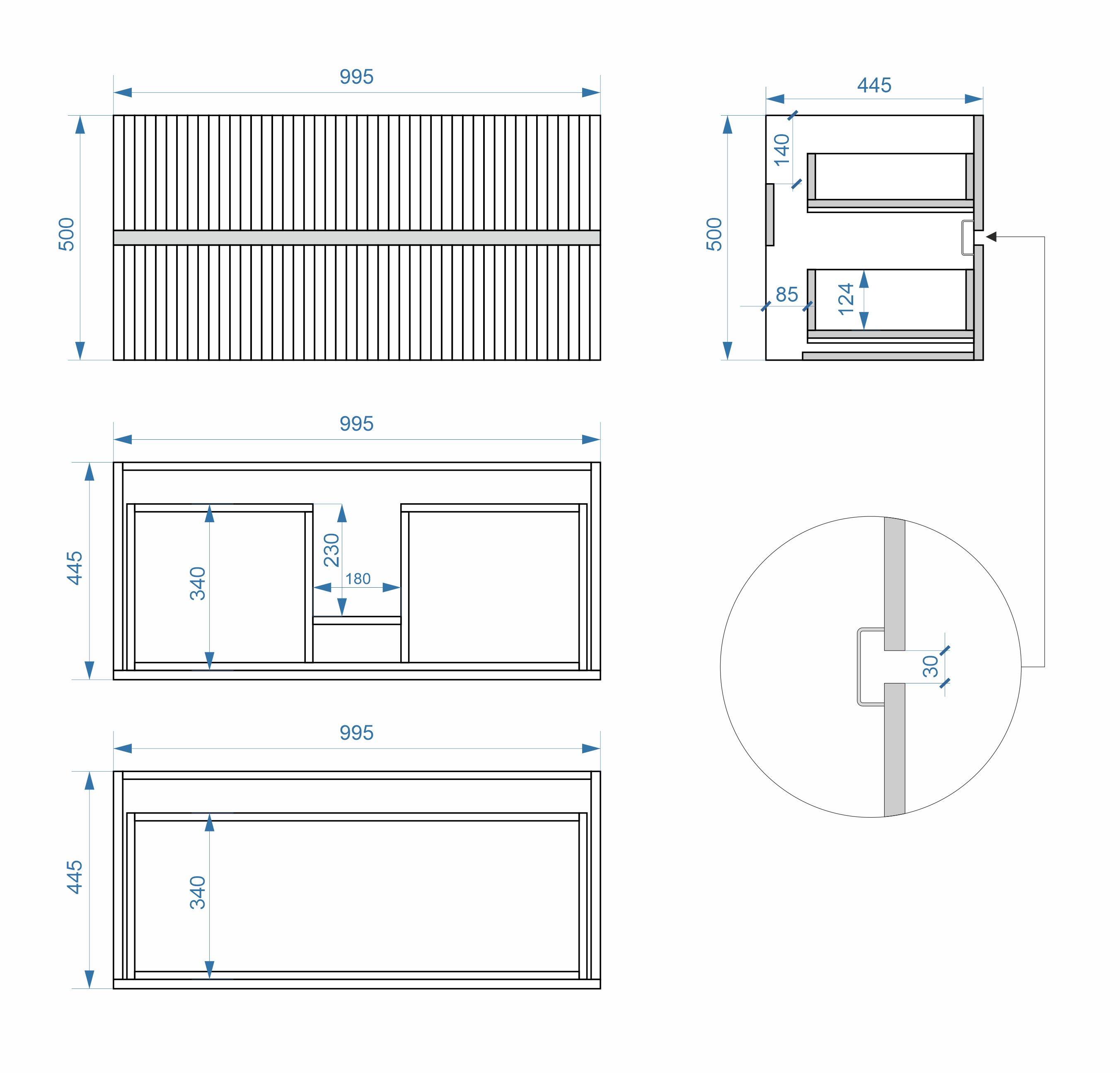 Тумба подвесная Vela Волна 100П под Classica (серый мат) черный гола TU2277