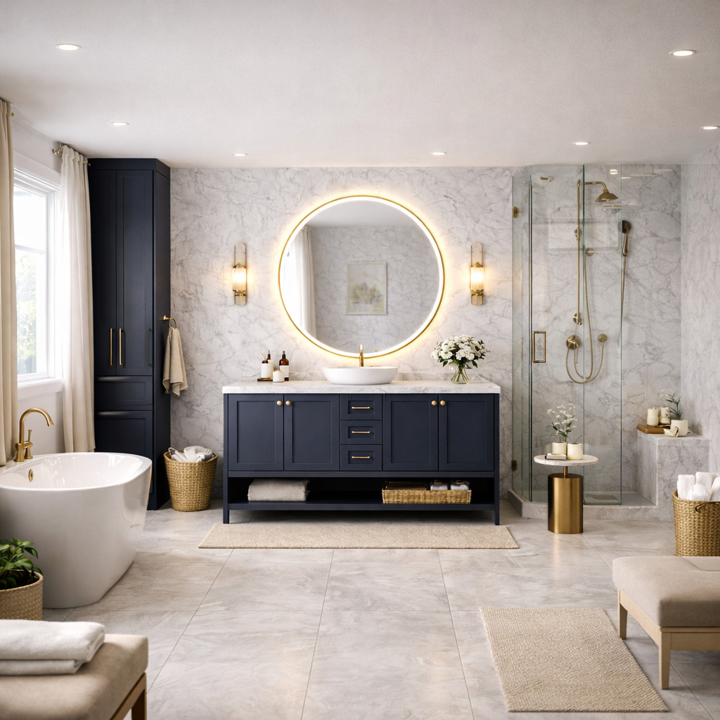 зеркало на подложке с тонкой рамкой по периметру, покрытие рамки – ЭМАЛЬ, согласно реестра отделок CLASSIC, подсветка – влагостойкая LED-лентаХарактеристики