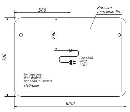 Двойная светодиодная фронтальная подсветка. Светодиодная подсветка зоны смесителя. Сенсорный выключатель в форме вензеля CAPRIGO. Влагостойкое исполнение,