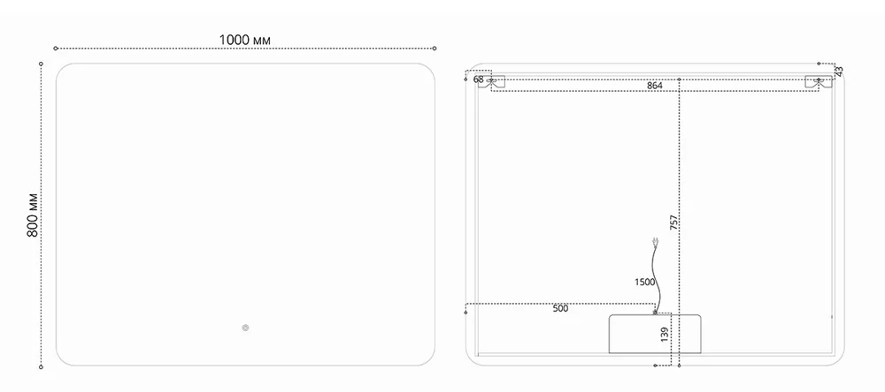 LED Подсветка: Зеркало оснащено эффективной LED-подсветкой, создающей приятное освещение в ванной комнате.
