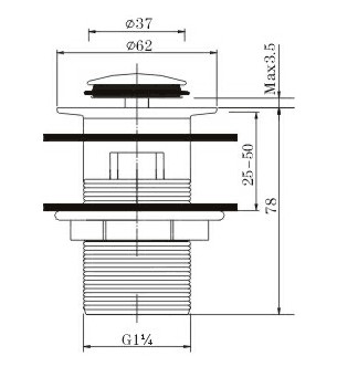 Донный клапан с переливом предотвращает переливание воды, обеспечивая комфортное использование раковины. Материал из латуни обеспечивает прочность и долговечность, а стандартный размер подключения 1"1/4 делает его совместимым с большинством сливных систем.
