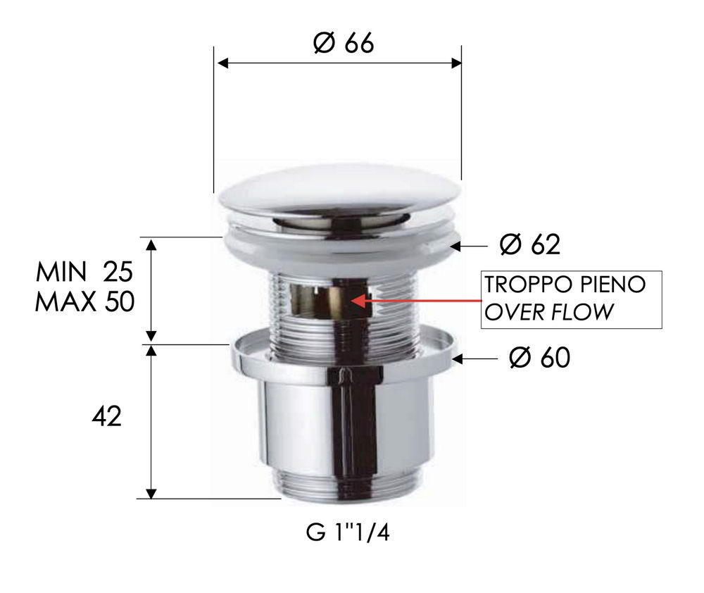 Донный клапан с переливом 1”1/4 Remer 905CC2114BG, золото брашированное