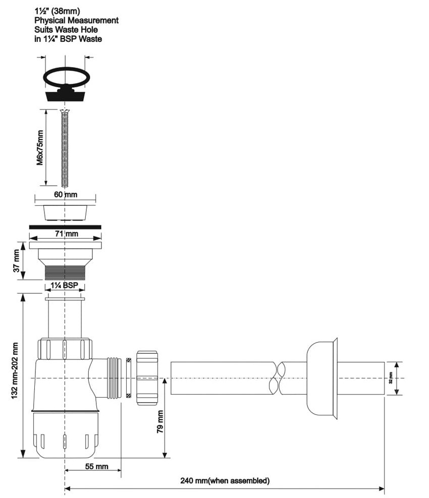 Стандарт подводки сливного отверстия 1 1/4"