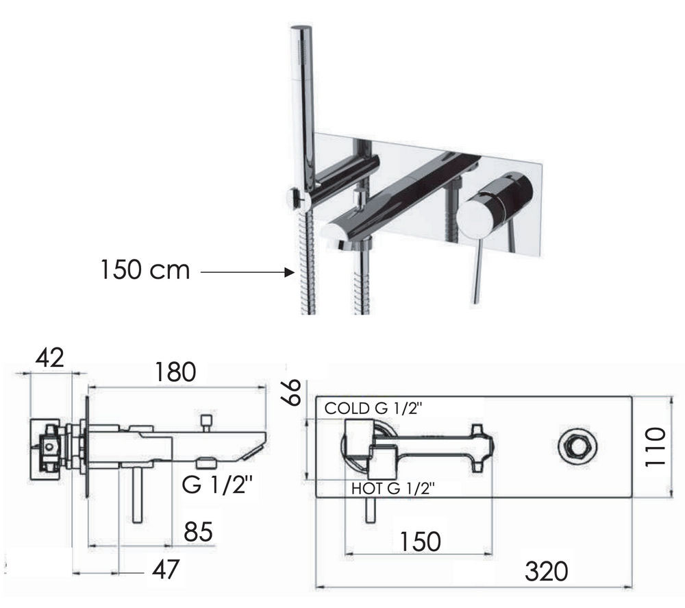 скрытая часть, ручной душ, шланг |